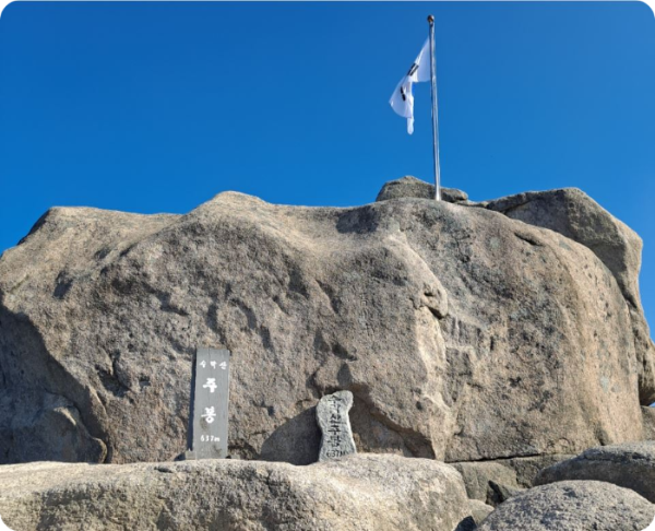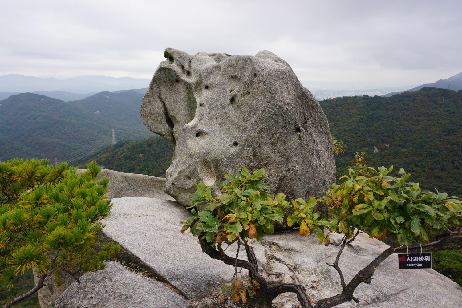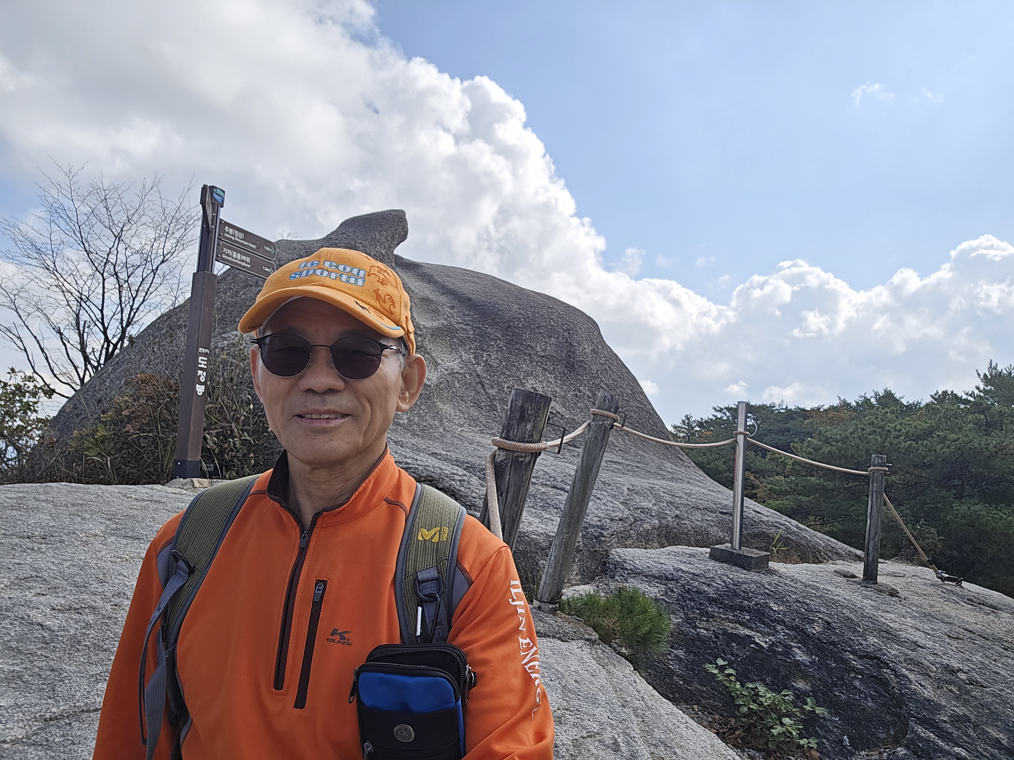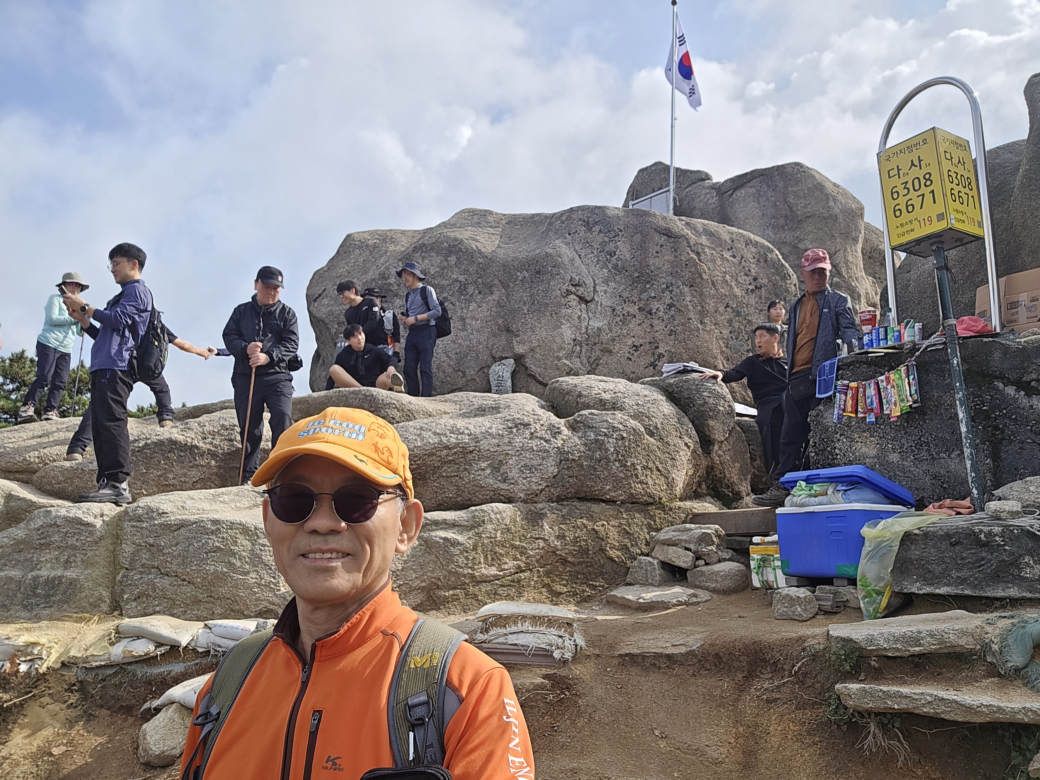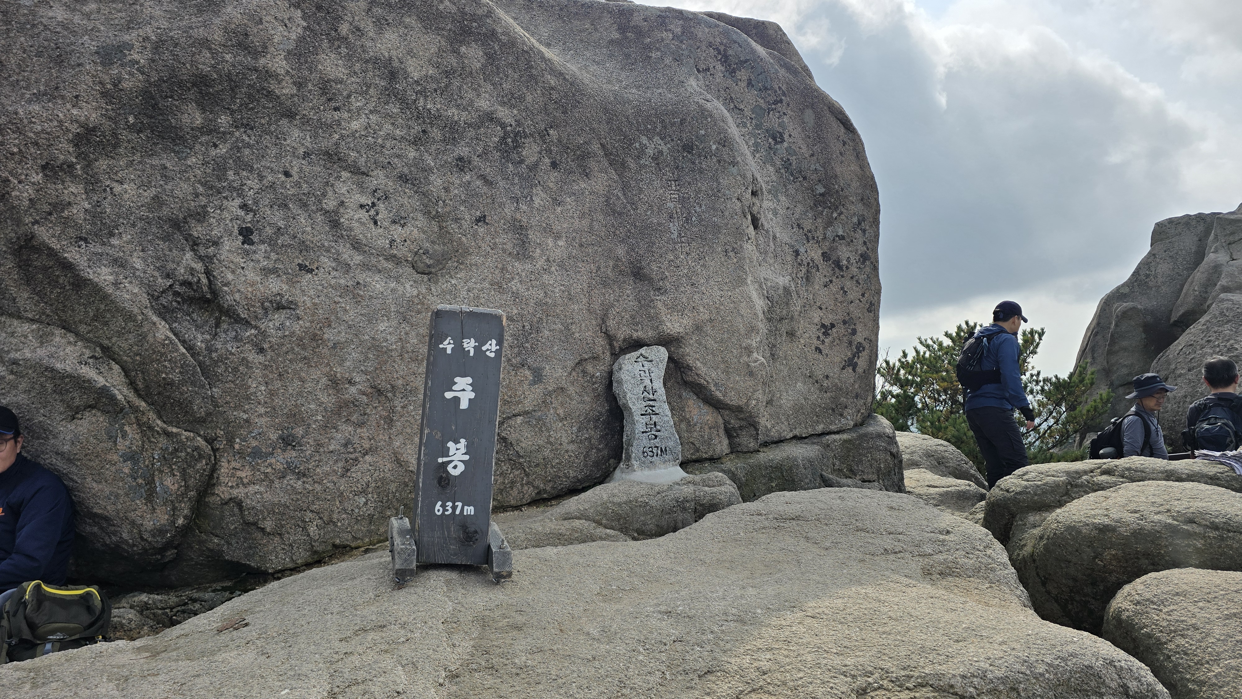수락산 정상에는 인증을 남기려 줄서 기다리는 사람들과 주변에 앉아 간식을 즐기는 사람들로 북적인다.