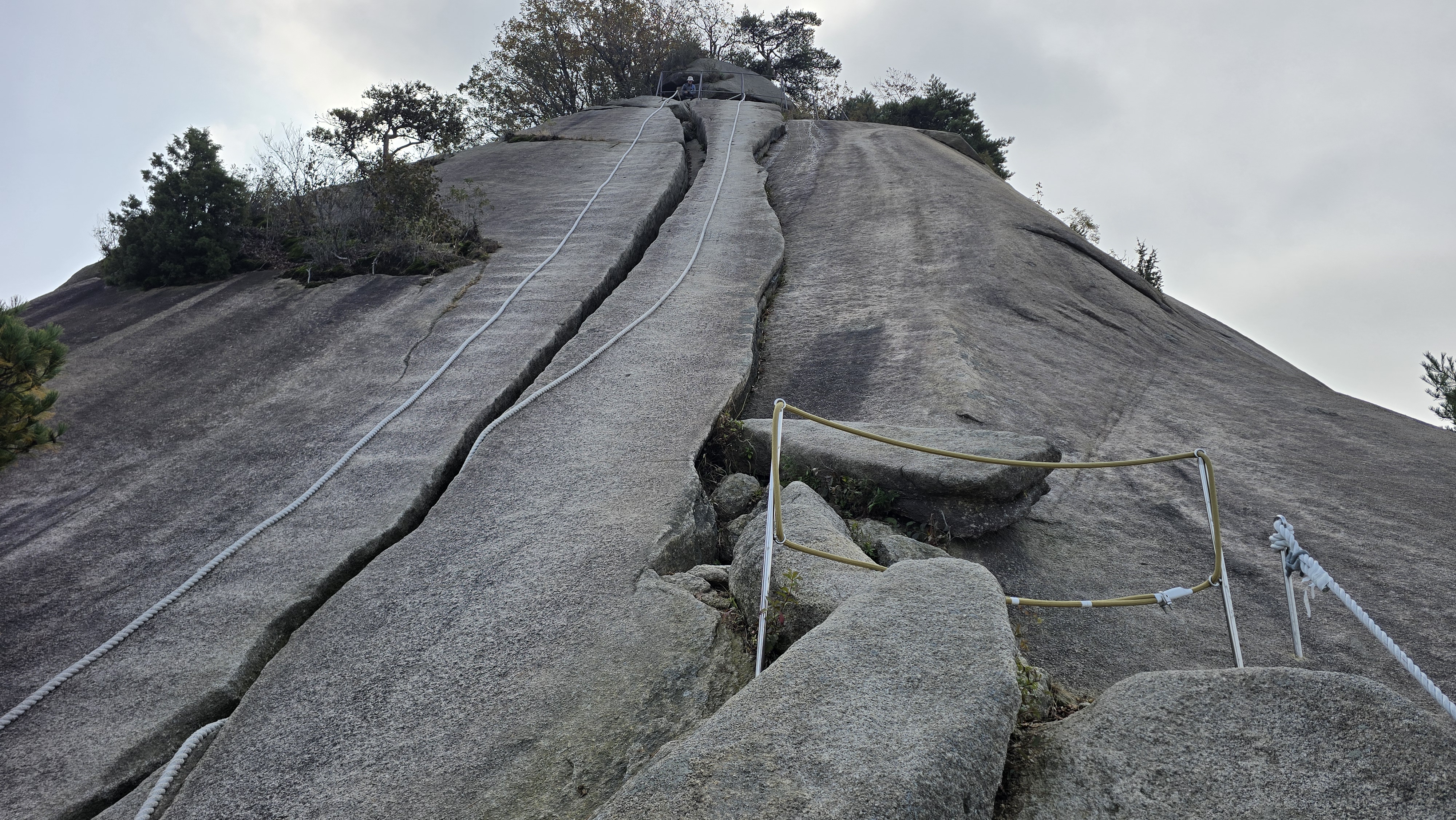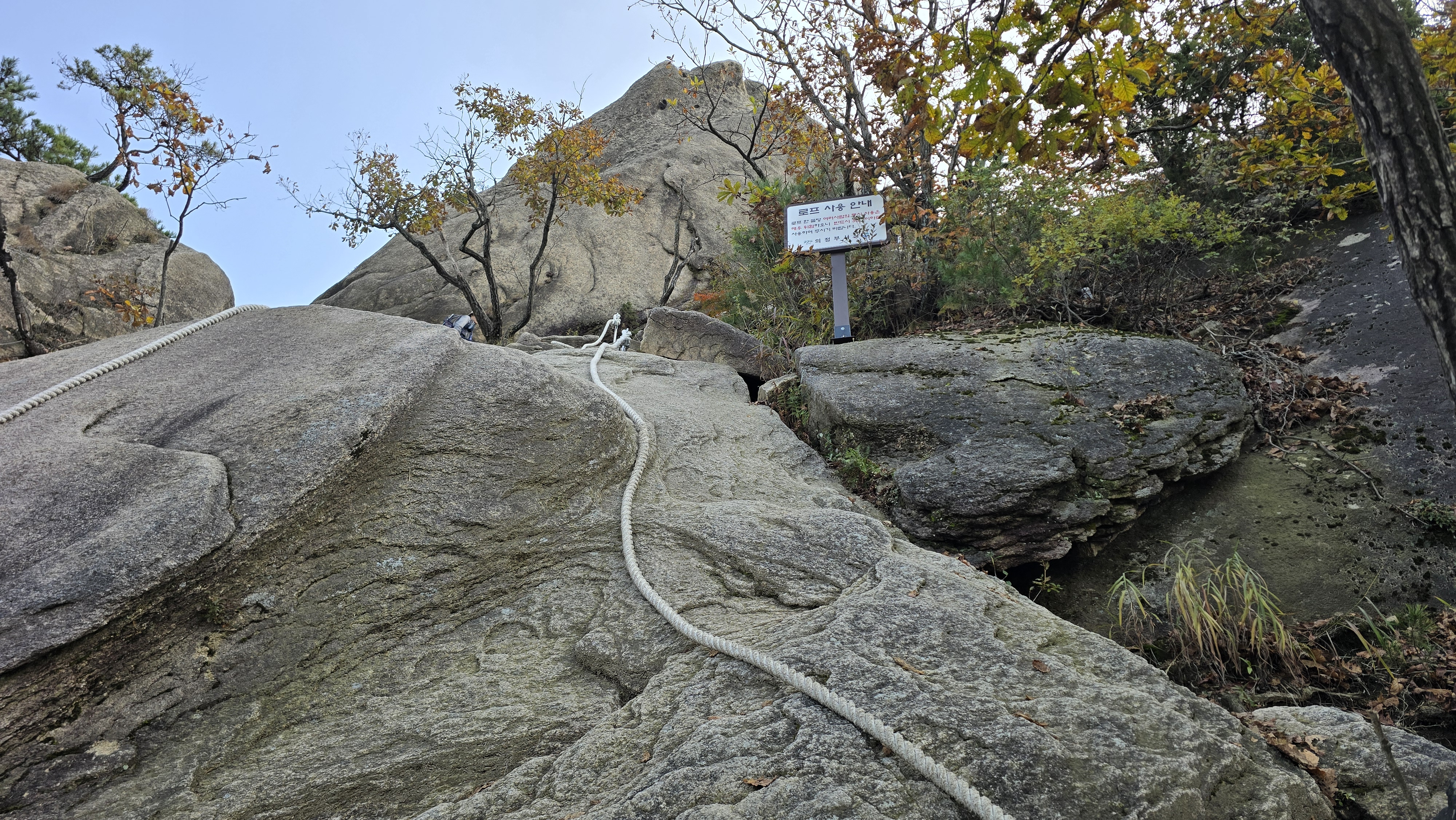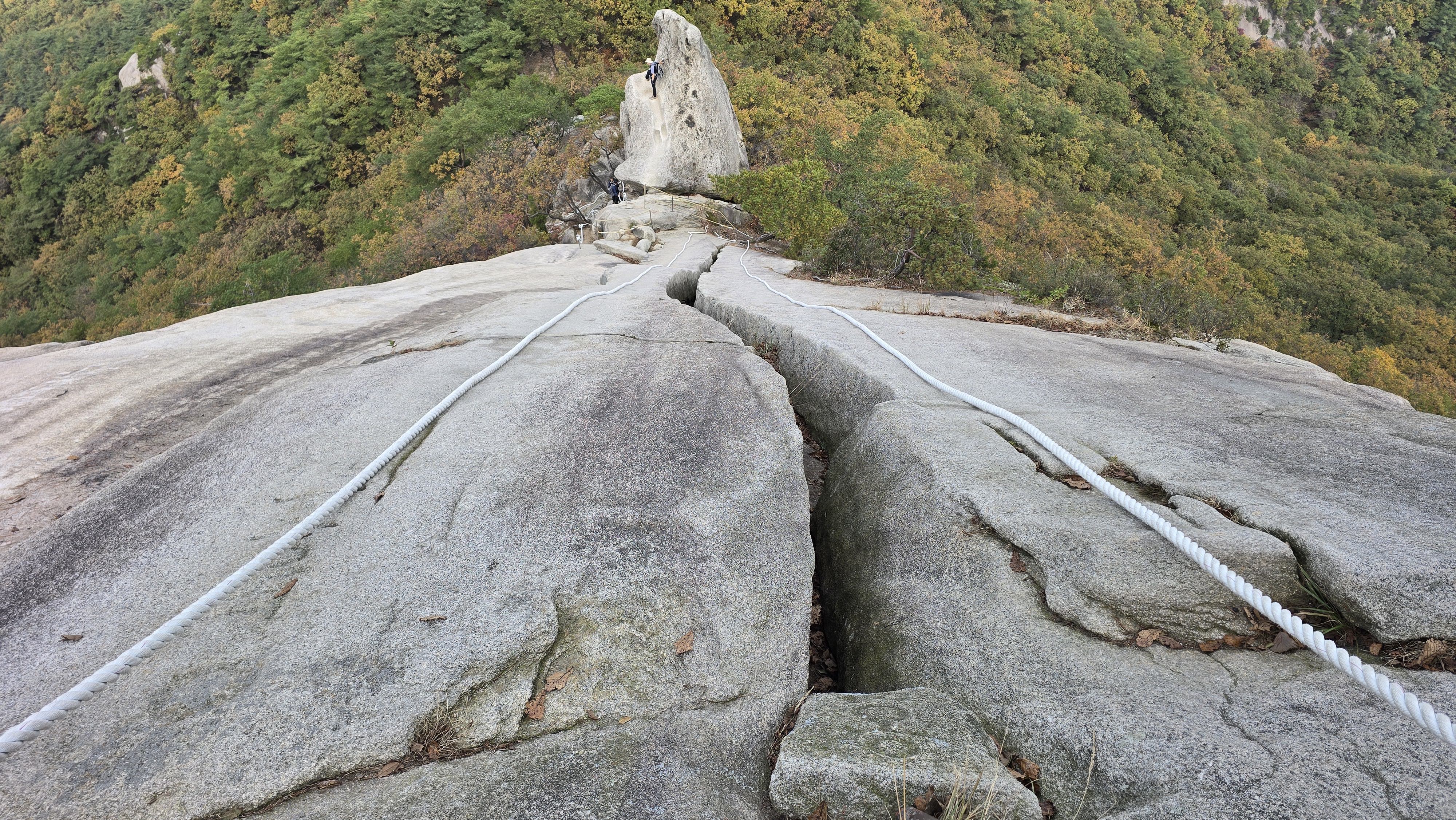 천천히 조심스럽게 오르면 로프 없이도 오를 수 있는 경사도이나 위험한 곳이다.