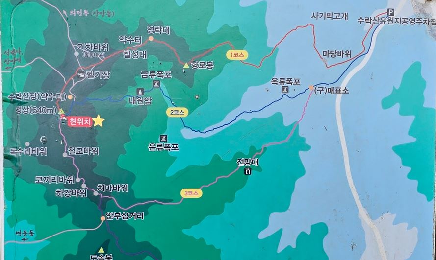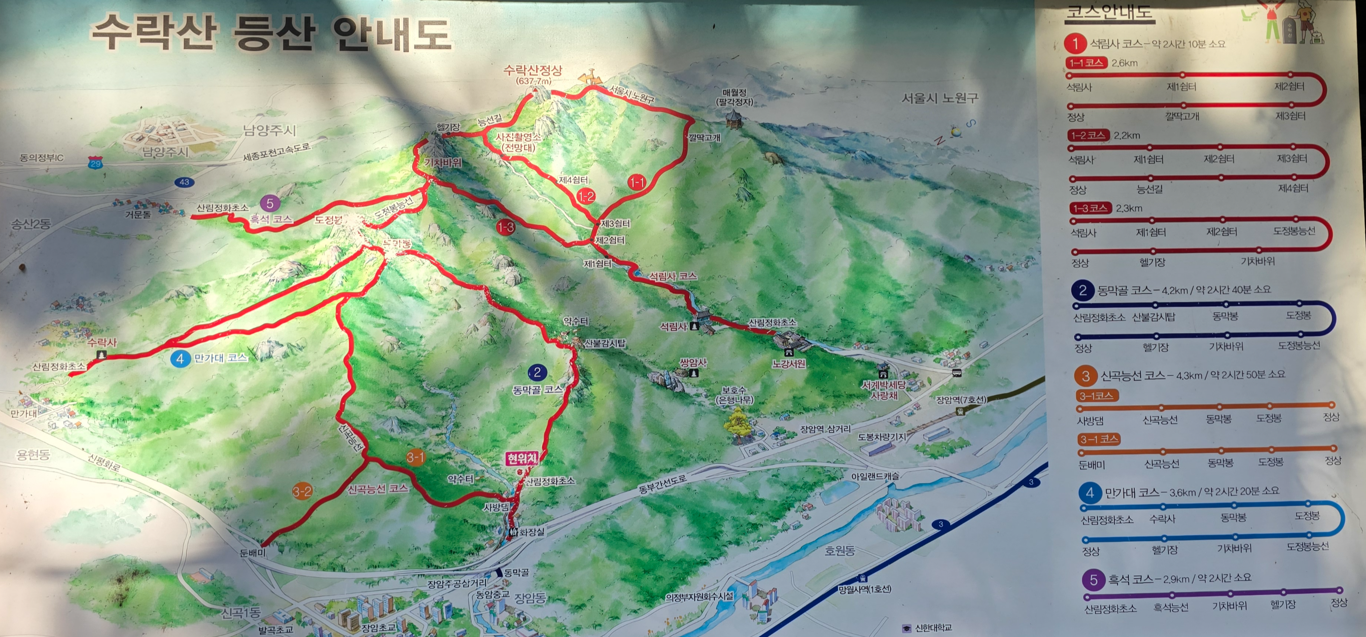 하산 후 동막골코스를 클릭하니 「수락산의 동막골 입구에서 시작해 도정봉을 거쳐 정상까지 가는 코스」로 약 2.4km에 1시간 25분 소요된다고 나온다. 그래서 친구는 쉽게 하산 할 것으로 예상했던 것 같다.