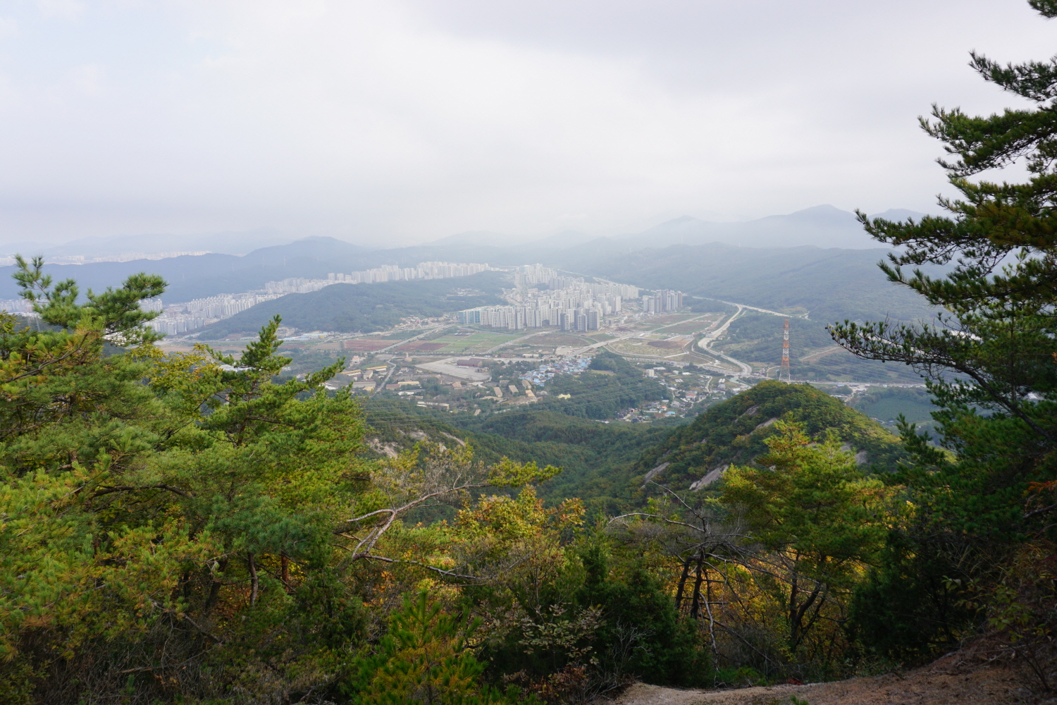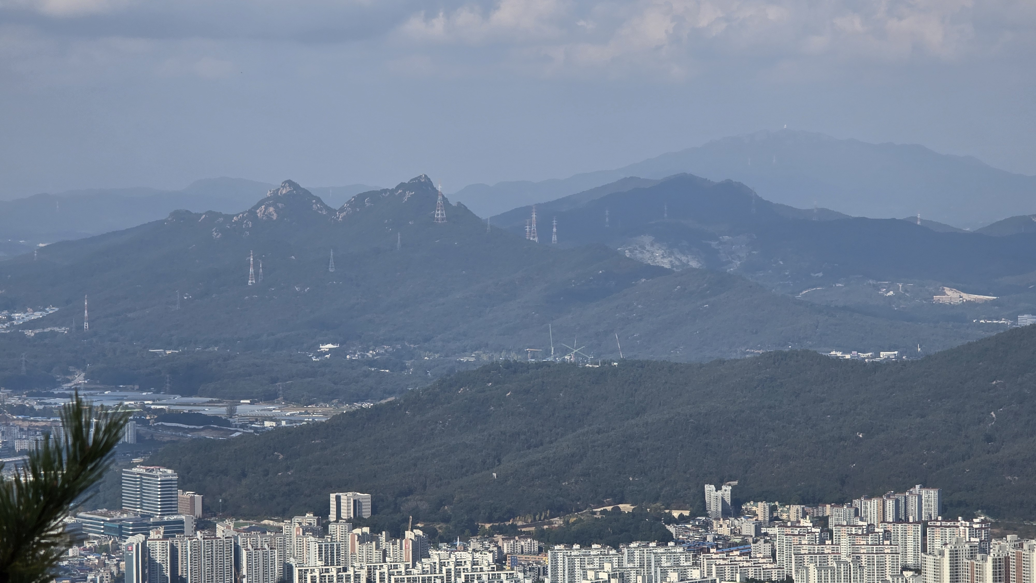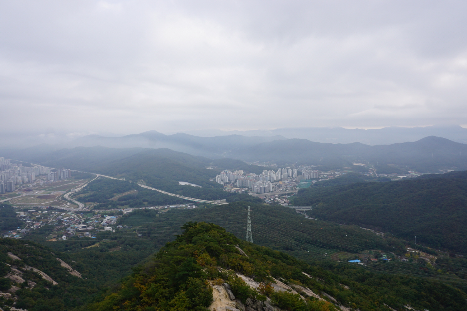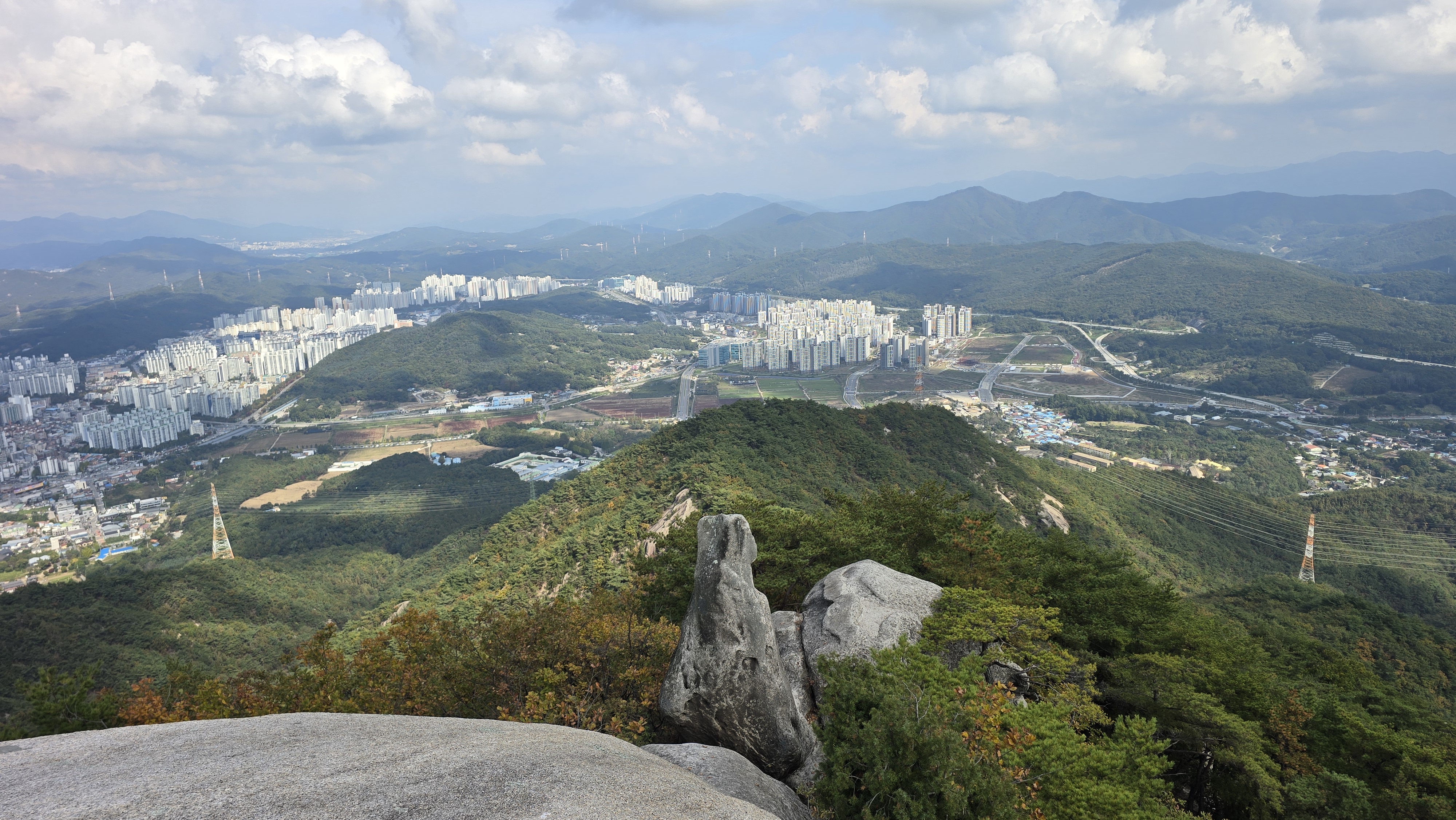 ↑ 남쪽 모습 : 남양주시 중심가와 구리시 /우측으로 우뚝솟은 불암산