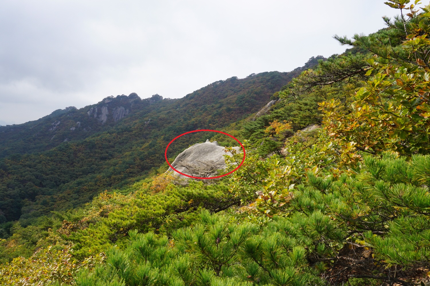 (사진에서 하얀 반석위의 모습으로 보인다.)