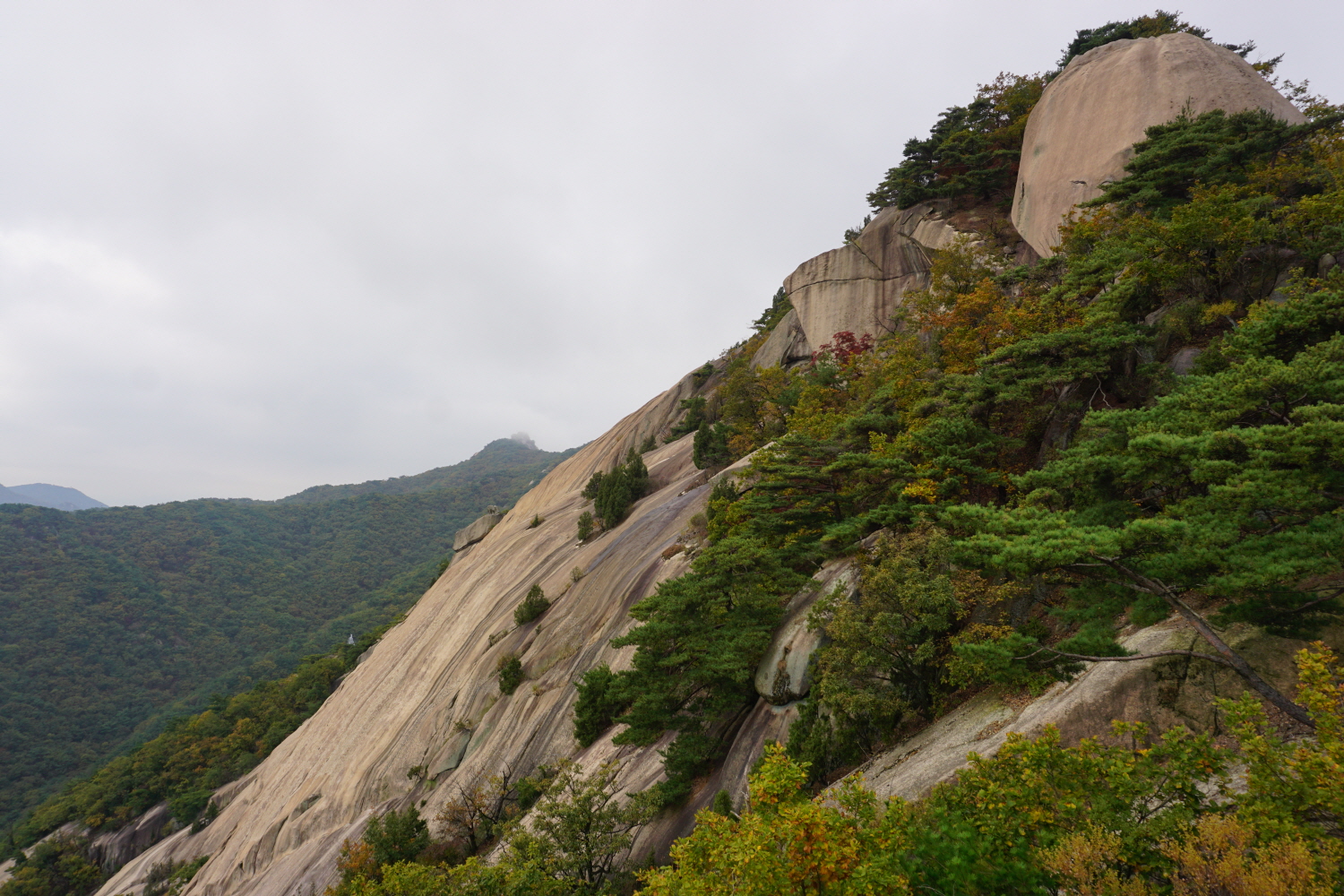 기차바위는 급경사로 매우 위험하기에 동막골코스에서 우회하는 곳이다.