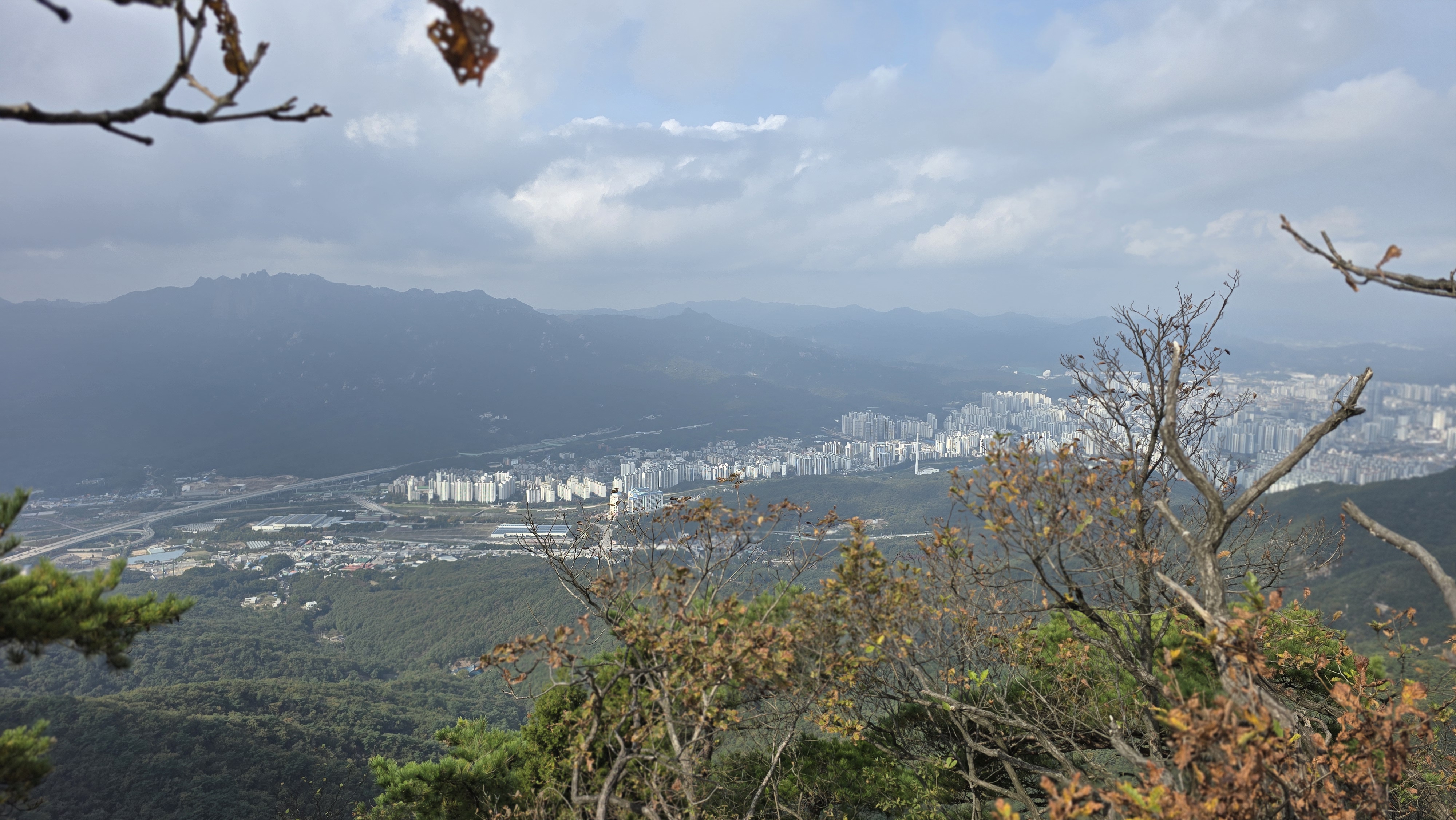 낮은 부용산을 끼고 좌측은 의정부 민락동 아파트단지 우측은 산곡동 아파트단지