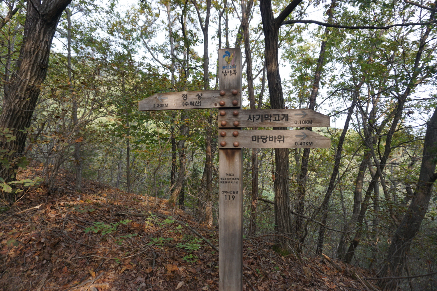 이 이정목이 없었다면 곧장 정상방향으로 올라갔을텐데 다행히 기차바위코스로 향한다.